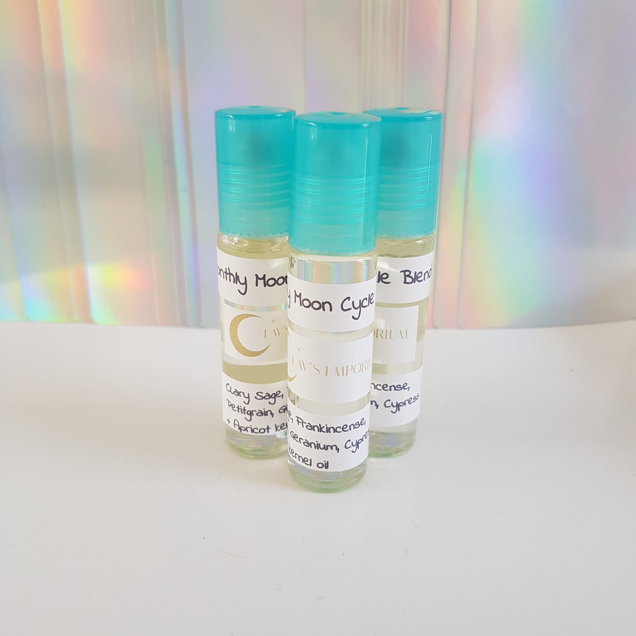 Ingredients: Clary Sage, Frankincense, Petitgrain, Geranium and Cypress essential oils in a Apricot Oil base – 10ml in size